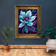 Mergulhe na beleza etérea deste trabalho de arte floral cativante. As delicadas pétalas, pintadas em tons vibrantes de azul e rosa, dançam contra um pano de fundo da meia-noite. Esta peça mesmerizante é uma adição perfeita a qualquer casa moderna, trazendo um toque de serenidade e elegância.