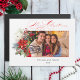 Escrito elegante para caligrafia Feliz Saudação de Natal (a cor é personalizável), modelo fotográfico com spray colorido de poinsetos de Natal, Holly e Pine.