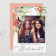 Foto moderna ''você será minha dama de honra'' convite floral. Design apresenta arranjos florais com flores de primavera, fotografia de solteiro e roteiro de tipografia. Personalize com um nome.