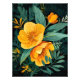 Um trabalho de arte digital impressionante com flores amarelas vibrantes contra um fundo preto dramático. Este design é certamente um pouco elegante e sofisticado para qualquer casa ou escritório.