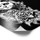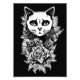 Ilustração gótica de rosto de gato com flores. A atmosfera escura e romântica evocada pelo estilo gótico da imagem soma-se à sua qualidade misteriosa e alarmante.