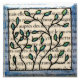 Arte de Marta Harvey. Esta peça foi criada adicionando texto francês a um azulejo, desenhando e pintando folhas e uma borda com tinta.