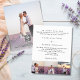 Um fundo branco, texto preto. Personalize e seus nomes e detalhes. Adicione 3 fotos na frente e uma na parte traseira. Voltar: adicione o URL do site de fotos e casamento ao código QR para obter detalhes e/ou RSVP. Com uma camada branca de fotos para que você possa ler o texto. 1 folha = 1 convite impresso de borda a borda.