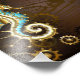 Fundo de madeira castanho com fundo marinho, cordilheira mecânica, volante antigo, âncora de ouro e diversas engrenagens de ouro e latão. Estilo Steampunk.