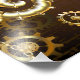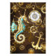 Fundo de madeira castanho com fundo marinho, cordilheira mecânica, volante antigo, âncora de ouro e diversas engrenagens de ouro e latão. Estilo Steampunk.