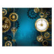 Turquesa, texturizada, fundo steampunk com latão e engrenagens douradas, chave prateada e relógio. Estilo Steampunk.