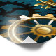 Turquesa, texturizada, fundo steampunk com latão e engrenagens douradas, chave prateada e relógio. Estilo Steampunk.