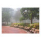 GA Savannah, Azaleas ao longo da calçada dos tijolos e bancos no Forsyth Park em nevoeiro, Primavera � Joanne Wells / DanitaDelimont.com