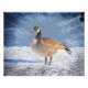 Um ganso canadiano na neve em um dia ensolarado