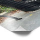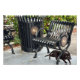 Gatinho no Parque ao longo da bancada de ferro e lixo. Gato Preto. Ferro preto e gato preto. Por frontiernow.com