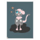 Gato bonito e engraçado com cabelo rosa andando sob as estrelas mágicas