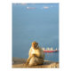 Macaco-barbaria no topo do Rochedo de Gibraltar, com a Baía de Gibraltar e a navegação em segundo plano