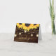 Foto de girassóis em madeira com luzes de cordas cartões de agradecimentos floral.