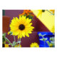Esta composição brilhante de girassol (Helianthus) contrasta com a terra azul e escura profunda no fundo.