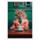 Gato bengal glamouroso num rico de terno cor-de-rosa bebendo café num bar