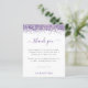 Foto Roxa Quinceanera Obrigado. Um alternativo de 4,5 pol x 5,6 pol com preço inferior. Disponível em um STOCK DE CARTÃO SEMI-GLOSS 110 lb, que é a opção padrão (mais espesso para convites), OU um STOCK de PAPEL THINNER FINISH 80 lb FINISH (ideal para gabinetes). Os envelopes são um extra opcional e são ligeiramente maiores que o tamanho da placa. Depois da sua festa de aniversário, diga-lhe obrigado com este design brilhante. Uma falsa borda de brilho em roxo está no topo, e Obrigado está em um roteiro elegante. Personalize facilmente o texto para seus próprios detalhes. Na parte de trás troque sua foto favorita do seu partido de orientação para retratos.