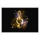 Jewelry, gold, musical treble clef with golden notes and stars on black glowing background.