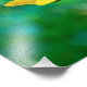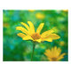 Flores amarelas brilhantes sobre fundo azul e verde.