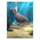 Renderização digital 3D de um golfinho fofo sobre fundo oceânico de fantasia azul