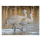 Um par de Sandhill Cranes percorre as águas rasas do refúgio local de vida selvagem num médio turvo-inverno. Estas são as maiores aves que podem ser vistas no Metro Vancouver durante todo o ano, mais frequentemente no chão, mas ocasionalmente no ar também. Por mais selvagens (e grandes) que sejam, aqueles que frequentam o Santuário de Aves Migratórias da Reifel consentirão em ser manipulados, e, de fato, por vezes, exigem o pagamento de sementes de aves desta forma! Baseado na fotografia original de W.H. Sim. Todos os Direitos Reservados. Mais informações em zazzle.com/walkswithnature