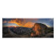Panorama de Half Dome e Vale Yosemite do Conselho de mergulho no pôr do sol. Califórnia, serras de Sierra Nevada, Parque Nacional de Yosemite, Vale de Yosemite. Fora da trilha John Muir perto de Mile 004.