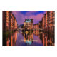 Hamburgo Alemanha à noite, luzes pitorescas, edifícios e pontes.