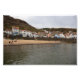 A Quiet Moment in a Historic Fishing Village This high-resolution photograph captures the charming waterfront of Staithes, North Yorkshire. The scene highlights the village’s unique architecture, with colourful cottages built directly into the hillside overlooking a small, sheltered sandy beach. Visitors and families are seen enjoying the shoreline at low tide, framed by the rugged coastal cliffs and the calm waters of the harbour. It is a perfect representation of the peaceful, slow-paced atmosphere found along the Cleveland Way.