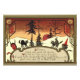 Bruxas e demônios saíram para aproveitar a noite. Este impressão de Halloween representa bruxa, diabo, jack o' lanterna, abóbora e gatos pretos. Ao fundo há uma lua de cheio, árvores e noite.