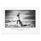Alinhamento fotográfico com uma imagem a preto e branco de um surfista em direção aos Super Tubos em Jeffreys Bay enquanto ele cruza as rochas com o surfboard em mãos enquanto veste uma suíte úmida, África do Sul.