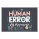 This playful tech illustration features "HUMAN ERROR Ai Approved" in soft pink, white, cyan, and peach, accented with whimsical robots, gears, and UFO elements. The balanced, circular composition combines retro tech vibes with modern graphic style. Perfect for AI enthusiasts, tech fans, and lovers of playful robot art, this vibrant design delivers humor, charm, and eye-catching detail for any digital art collection.