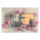 Esta primavera envia a alguém uma saudação Páscoa! Esta impressão de colheita representa uma paisagem nevada com uma igreja. As rosas cor-de-rosa delimitam a imagem.