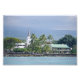 "Mokuaikaua Church, Hulihee Palace, Kailua-Kona, Havaí", por Catherine Sherman. A Igreja de Mokuaikaua, uma igreja branca com uma torre alta, encontra-se entre as paisagens tropicais de palmeiras e edifícios em Kailua-Kona, na Grande Ilha do Havaí. Ao lado da igreja fica o Palácio de Hulihee. Estes dois edifícios no centro Kailua-Kona, situado no Oceano Pacífico, estão ambos listados no Registro Nacional de Lugares Históricos dos Estados Unidos. A Igreja de Mokuaikaua é a Igreja Cristã mais antiga do Havaí. Foi fundada em 1820 e a construção do prédio atual começou em 1835. Hulihee Palace é a antiga casa de férias da realeza havaiana.