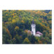 Foto impressão de uma igreja cercada por árvores numa floresta em cores de outono nas colinas em torno do Lago Bled, na Eslovênia, no outono.
