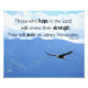 Esta design religiosa é extremamente inspiradora. Ele apresenta fotografia de uma águia em ascensão com uma bela paisagem de montanhas e céu. O texto é do verso Bíblia Isaiah 40:31 e diz "Aqueles que esperam no Senhor irão renovar sua força. Eles vão voar em asas como águias." Ideia perfeita para um cristão, Godchild, pastor, padre ou Godparent. Clique no botão "Personalizar" para adicionar texto e/ou fotos adicionais.