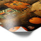 Aldeia de Halloween, com símbolos da celebração do Halloween em cores do outono. Feliz Dia das Bruxas!