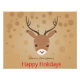 Cabeça fofa de uma rena num fundo castanho desejando um feliz Natal. Personalização de 100%. Clique no botão PERSONALIZAR para adicionar, mover, excluir, redimensionar ou alterar qualquer uma das fontes ou gráficos.