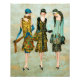 Ilustração da moda da Vintage de 1930 sobre o ouro e o papel velho verde