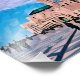 Um trabalho de arte geométrico cativante retrata a Mesquita Hassan II, mostrando sua espantosa arquitetura sob um céu azul vibrante. O estilo abstrato destaca a grandiosidade e o significado cultural da mesquita.