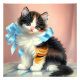 Impressão de fotografia com um gatinho calico fofo. O gatinho veste uma fita azul enquanto se senta adoravelmente em uma mesa. Um presente perfeito para amantes de gatos e entusiastas de arte vitorianos!