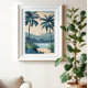 Escapar à serenidade com esta impressão tropical gerada por IA, capturando um paraíso sonhador ao amanhecer. Torres de palmeiras armam uma linha costeira tranquila enquanto ondas de oceano moles beijam a praia arenosa. Colinas rolantes e montanhas longínquas cobertas de névoas desaparecem no fundo, evocando uma atmosfera pacífica e exótica. Renderizado em tons calmantes de lacre, bege e verde suave, esta trabalho de arte traz a essência de um retiro litorâneo pacífico para qualquer espaço. Perfeito para amantes da decoração tropical, entusiastas da praia, ou qualquer pessoa que queira adicionar uma peça calorosa e inspirada na natureza à sua casa ou escritório.