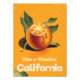 Poster de viagens californiano de férias com laranja fatiado. "tire férias!"