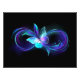 Símbolo infinito com borboleta mágica, roxa e brilhante com asas transparentes, sobre fundo preto. Borboleta brilhante.