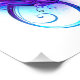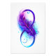 Símbolo infinito com uma bela pena pintada em cores roxas e azuis brilhantes sobre fundo branco.