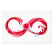 Símbolo infinito do fluxo contínuo de vinho tinto que entra em vidro de vidro sobre fundo branco.