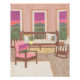 Interior Design living room art in which one of the pillows has the same view as the outside landscape colors.