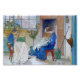Meninas vestidas de azul sentadas em cadeiras movidas a duro costurando à mão. Vintage belas artes pelo artista sueco Carl Larsson.