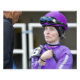 Jacqueline Davis recebendo instruções pré-raciais no paddock na histórica pista de Aqueduto. Fleetphotoname