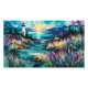 Faróis e lindas flores silvestres em uma baía ao nascer do sol em cores de Arte AI púrpura, azul, verde e dourada por minx267