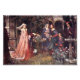 O renascimento inspirou a pintura de pessoas no jardim com fonte. Centro de peças numa donzela num manto. Vintage belas artes por John William Waterhouse. Dominio público.