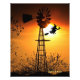Um pôr do sol colorido do Kansas com um moinho de vento e nuvens com o Sol descendo jogaram as nuvens. Com cores brilhantes ao norte de Hutchinson Kansas USA no País com a silhueta de árvores. Isso está em uma Foto Alargada. Com uma bruxa negra!!!